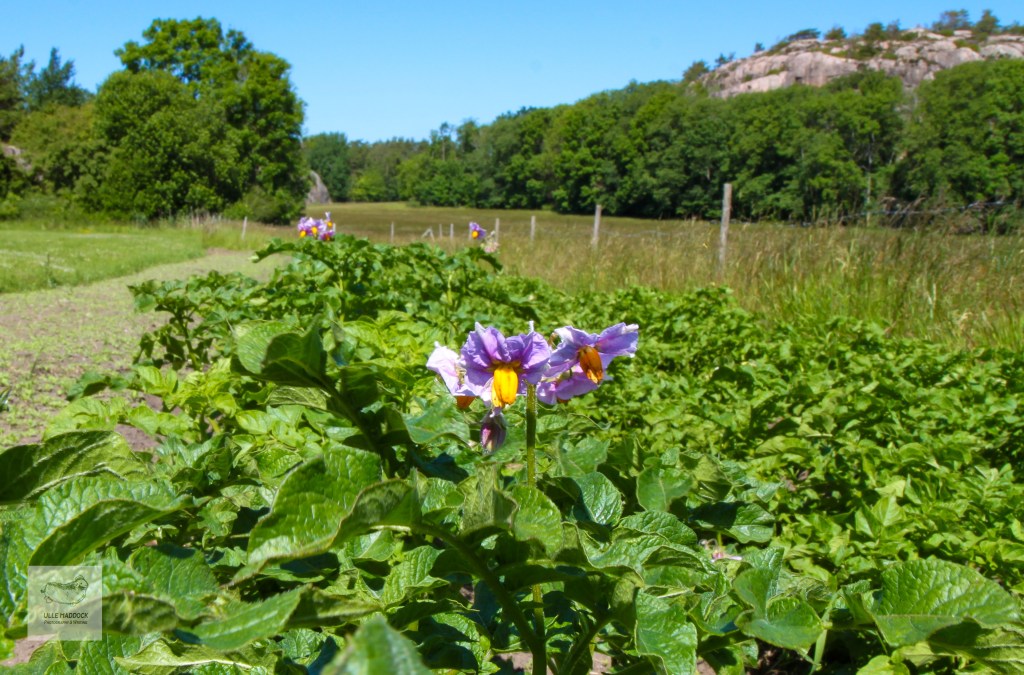 I guess it’s not the flower people think of when we speak of the potato (Solanum tuberosum). But it is very beautiful with its blue and orange colors. Don’t try to eat it or make chips from the leafs, they are poisonous. It’s the tuber you want so you have to dig in.