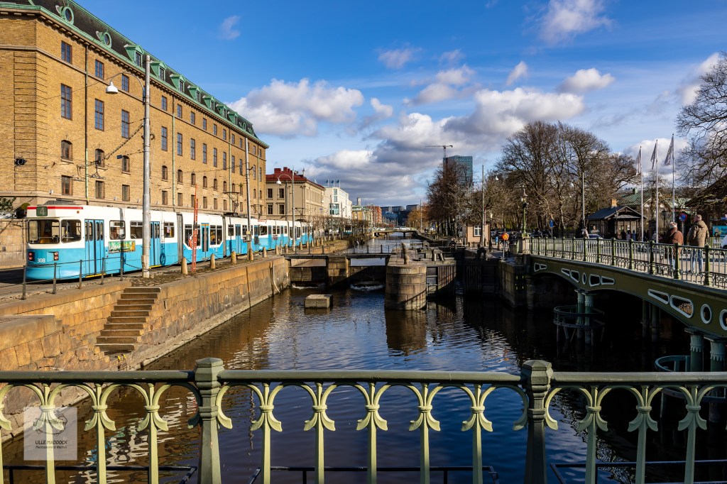 Picture from a busy Saturday in Göteborg with tram congestion in front of the old central post office. Straight ahead is ‘Slussen’, the lock for the canal ‘Fattighusån’. At the end in line with the high rise 900 meters away lies the building that named this canal, ‘Fattighuset’, the Alms-House. The canal has a name that implies that is a small river, ‘ån’ in Swedish. Why this name? Guess it’s an evidence of the humor in Göteborg.